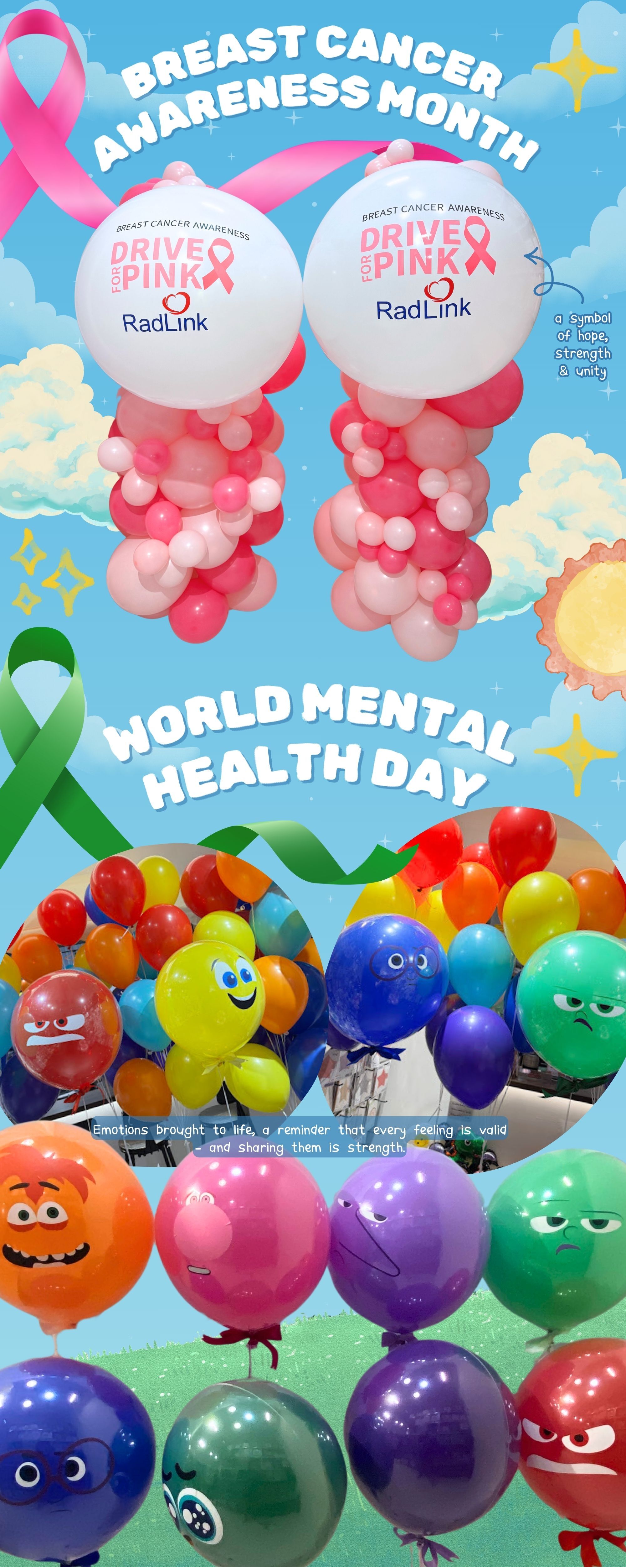 This October, we honour two important causes — Breast Cancer Awareness Month and World Mental Health Day — through balloons that carry heartfelt messages of hope and encouragement.