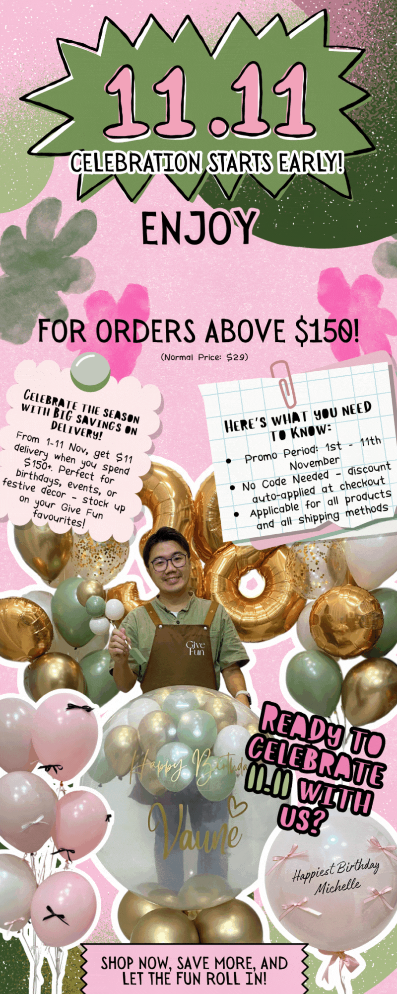 11.11 Celebration Starts Early — $11 Delivery for Orders Above $120!