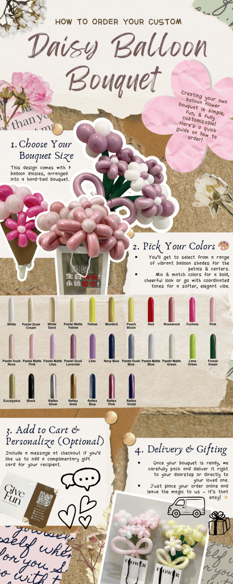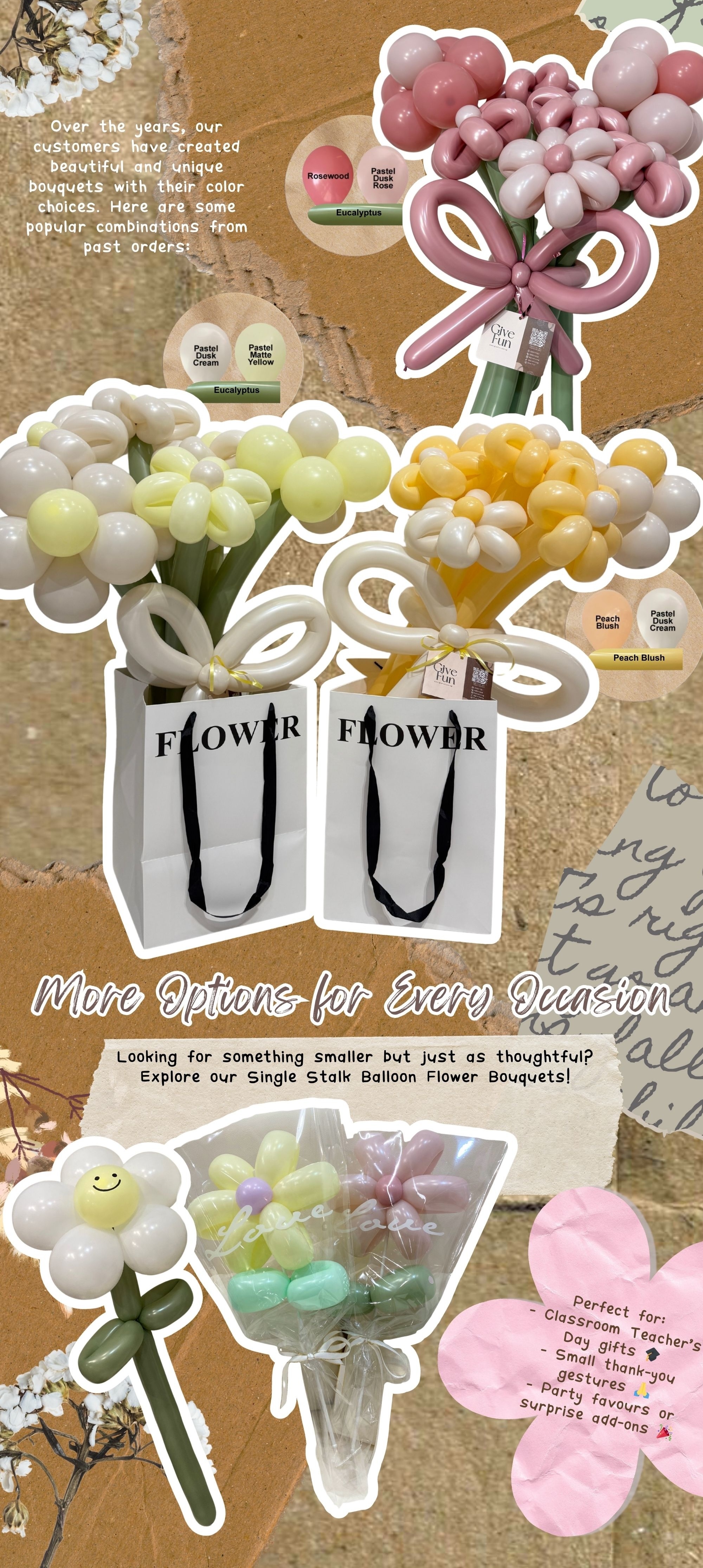 Add a pop of personality to your gift with our Flower Balloons Hand Bouquet! Whether you love soft pastels or bold brights, this bouquet lets you pick your own color combination for each daisy — creating a design that’s truly yours.