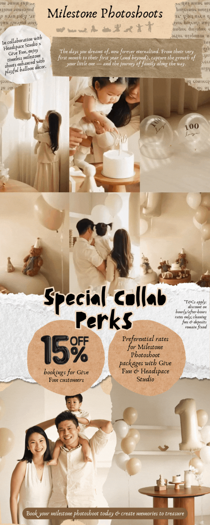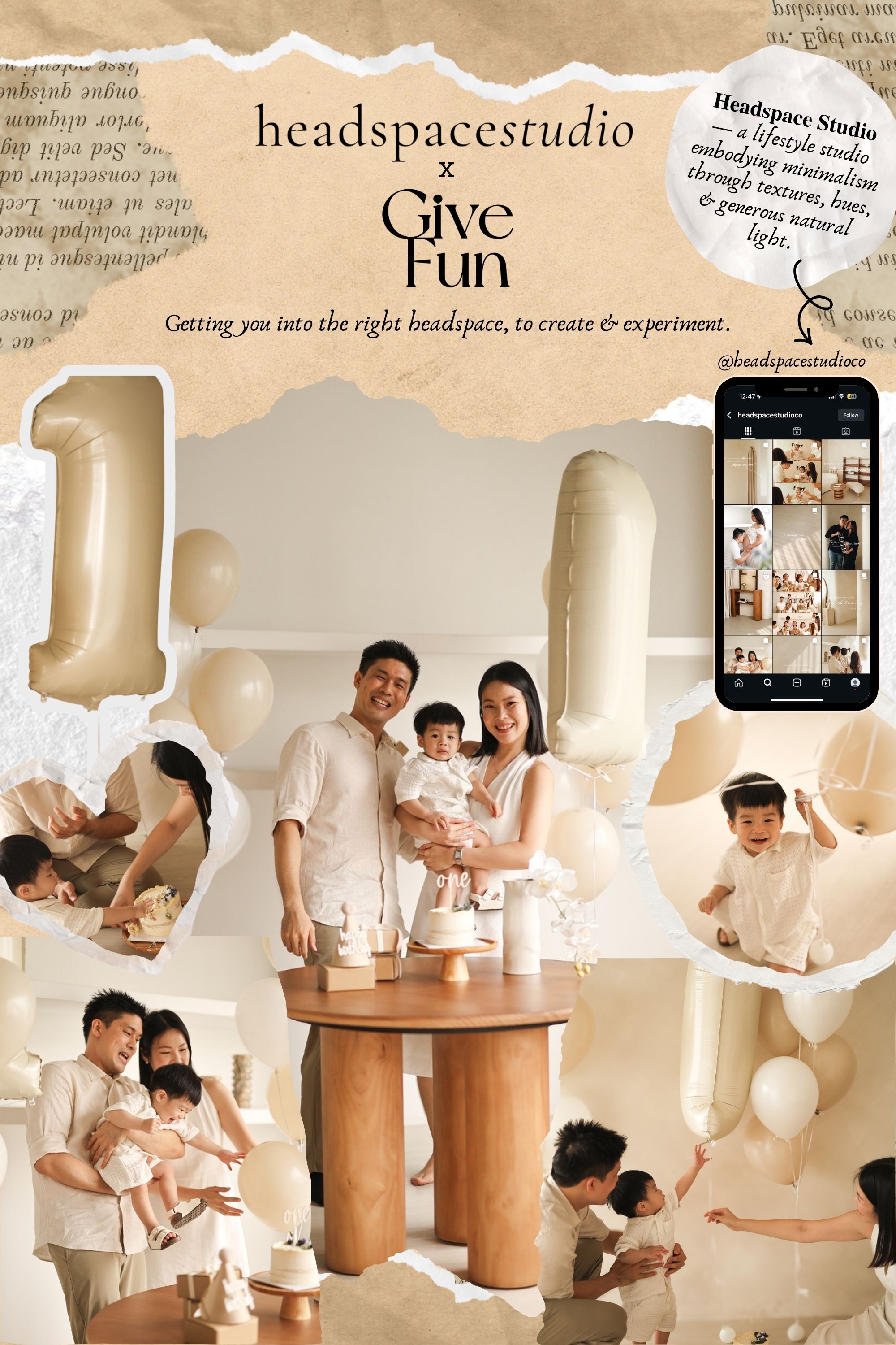 Milestones deserve to be remembered beautifully, and that’s where Headspace Studio x Give Fun come together. Headspace Studio, known for its minimalist aesthetic, natural light, and timeless design, sets the perfect stage for capturing precious family memories.