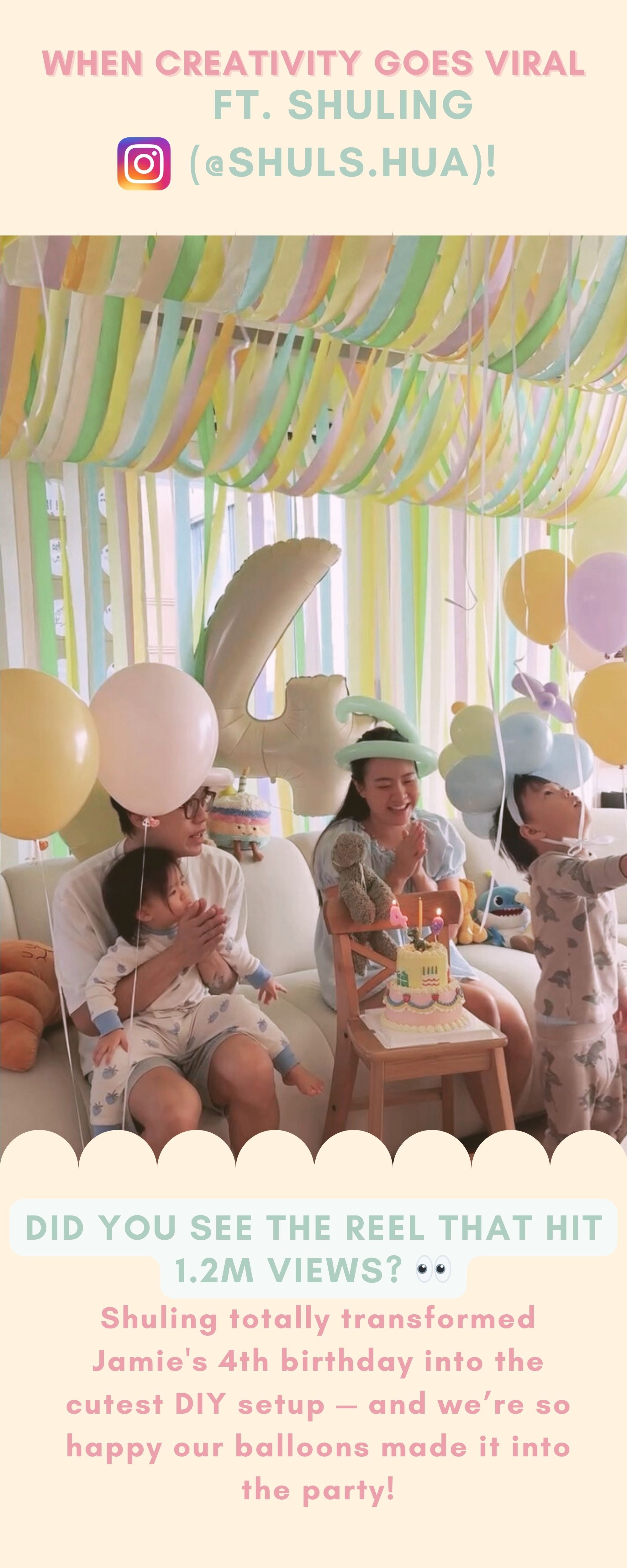Did you catch the birthday reel that took social media by storm? Shuling’s DIY setup for her son Jamie’s 4th birthday racked up an incredible 1.2M views, and we’re absolutely thrilled that our balloons were part of this unforgettable celebration.